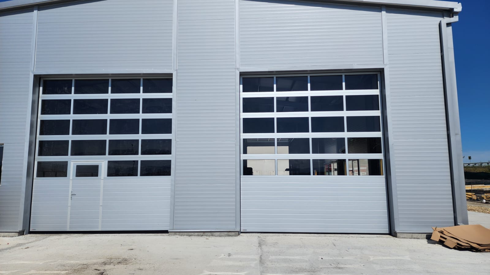 Proiect finalizat cu succes în colaborare cu Natema! Am instalat uși secționale industriale cu panouri vitrate și ușă pietonală integrată, perfecte pentru spații moderne și eficiente.